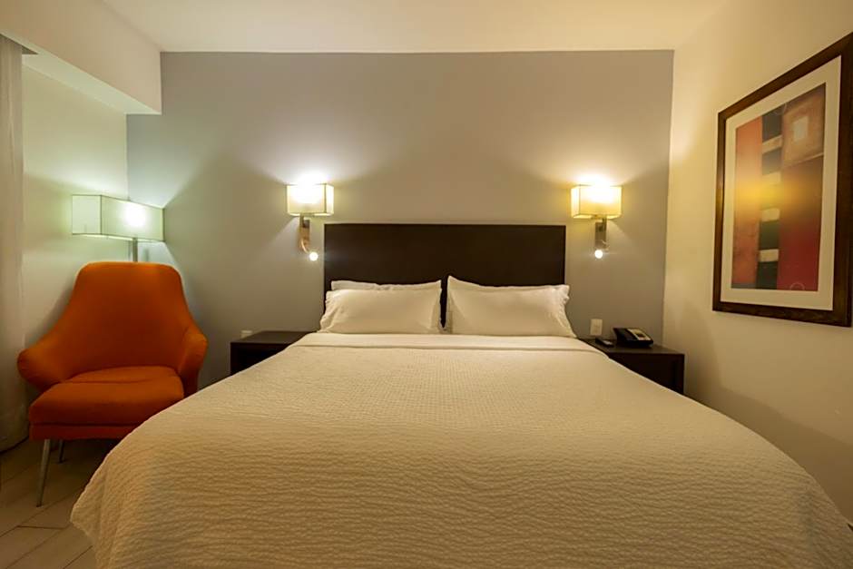 55'' TV, bathroom with shower and toilet, the bathroom does not have a bathtub, 24-hour room service, coffee maker, safe, telephone, reading chair, work desk. Room with 1 king-size bed, smoking is not allowed in the room.